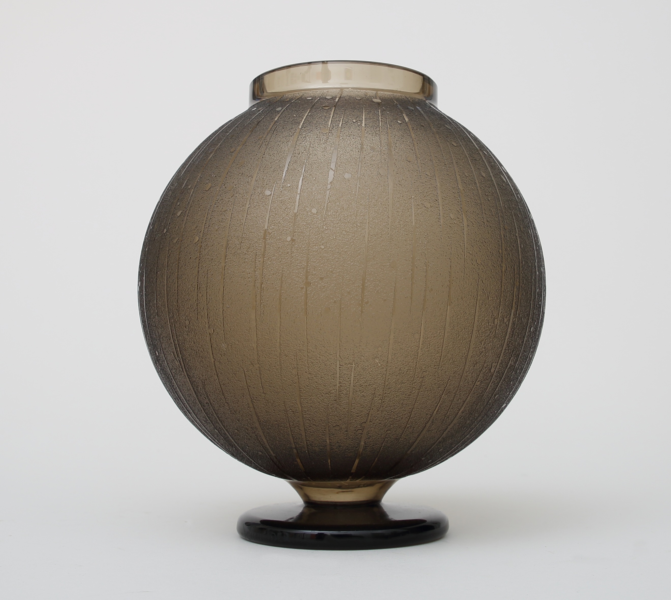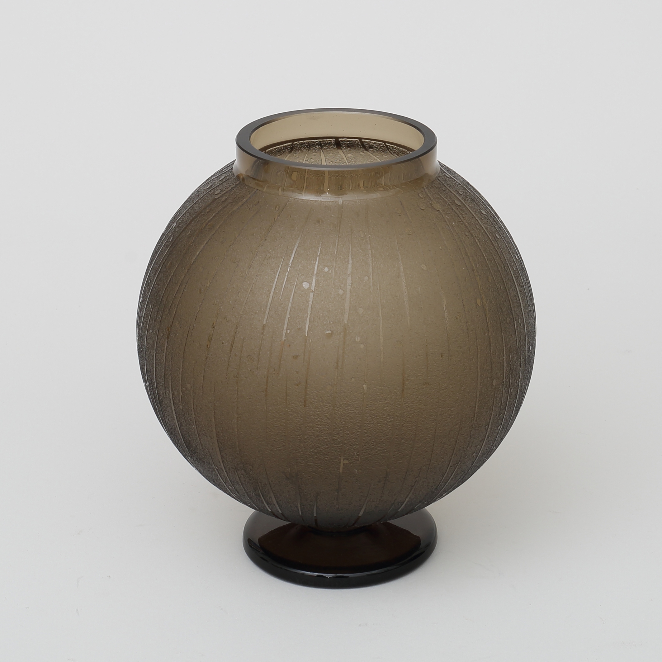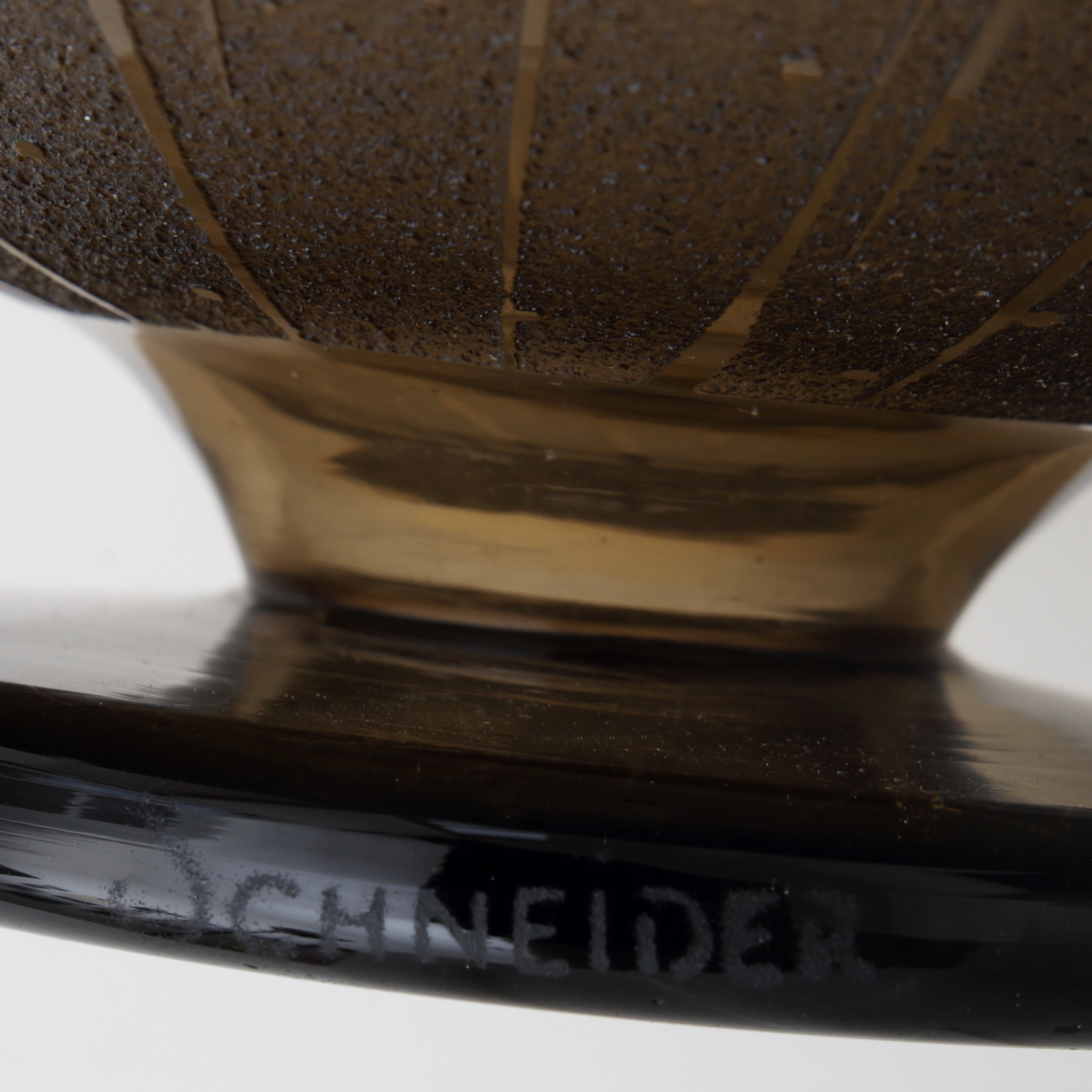 Acid etched, sandblasted glass. Signed piece.