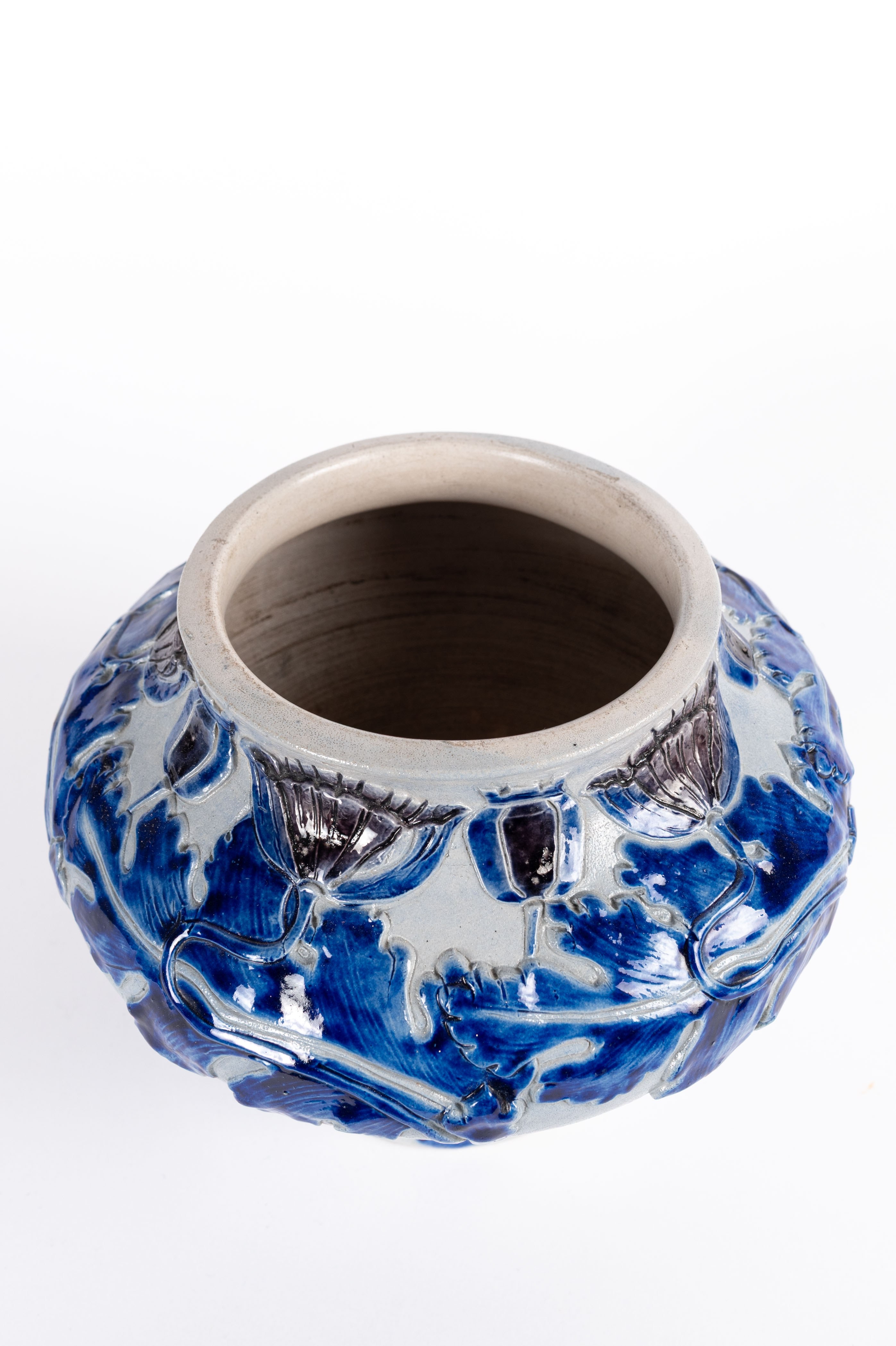 • KERAMIEK VAAS BLAUW BLADMOTIEF 4