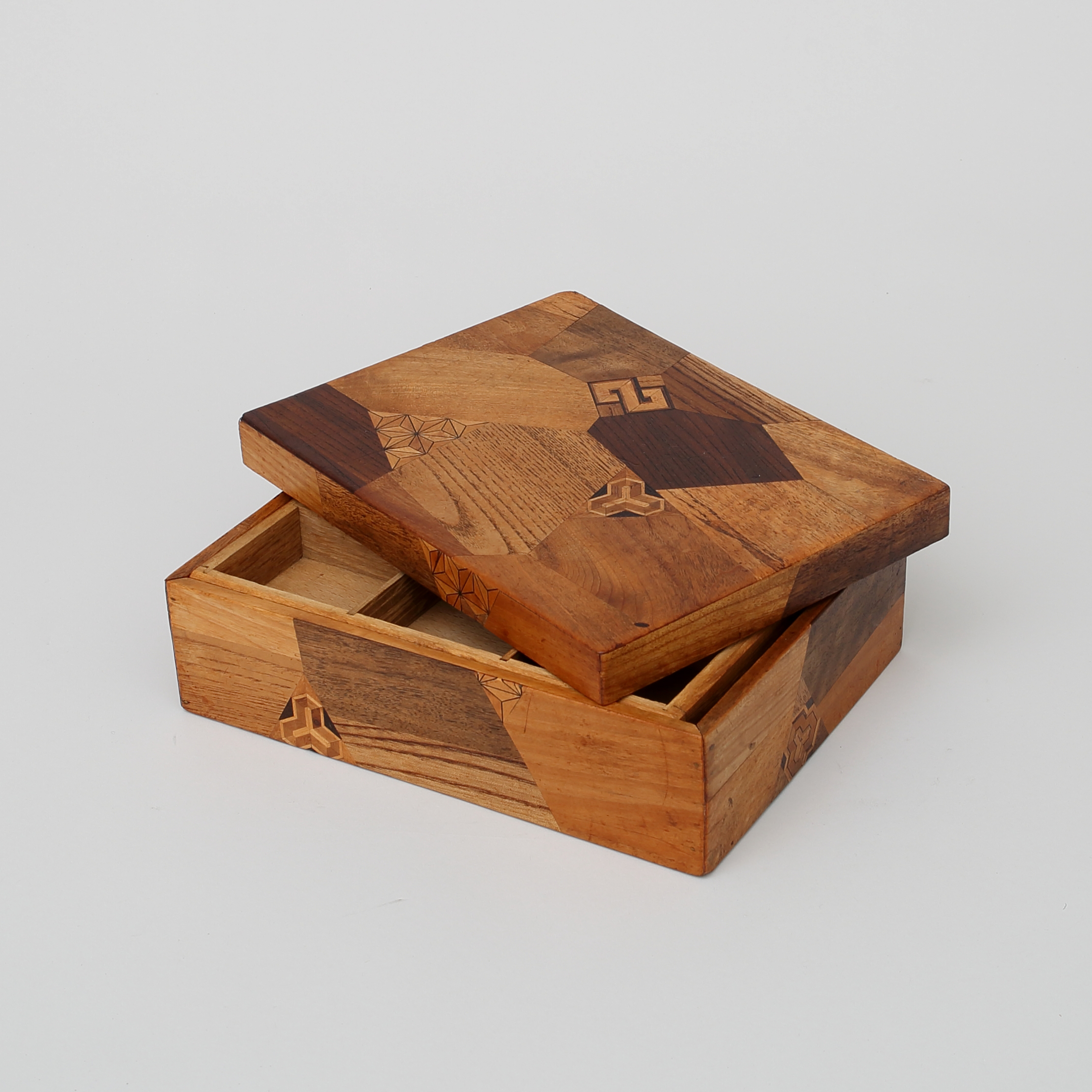 Japanese wooden box with inlay marquetry (Meiji 1868-1912)