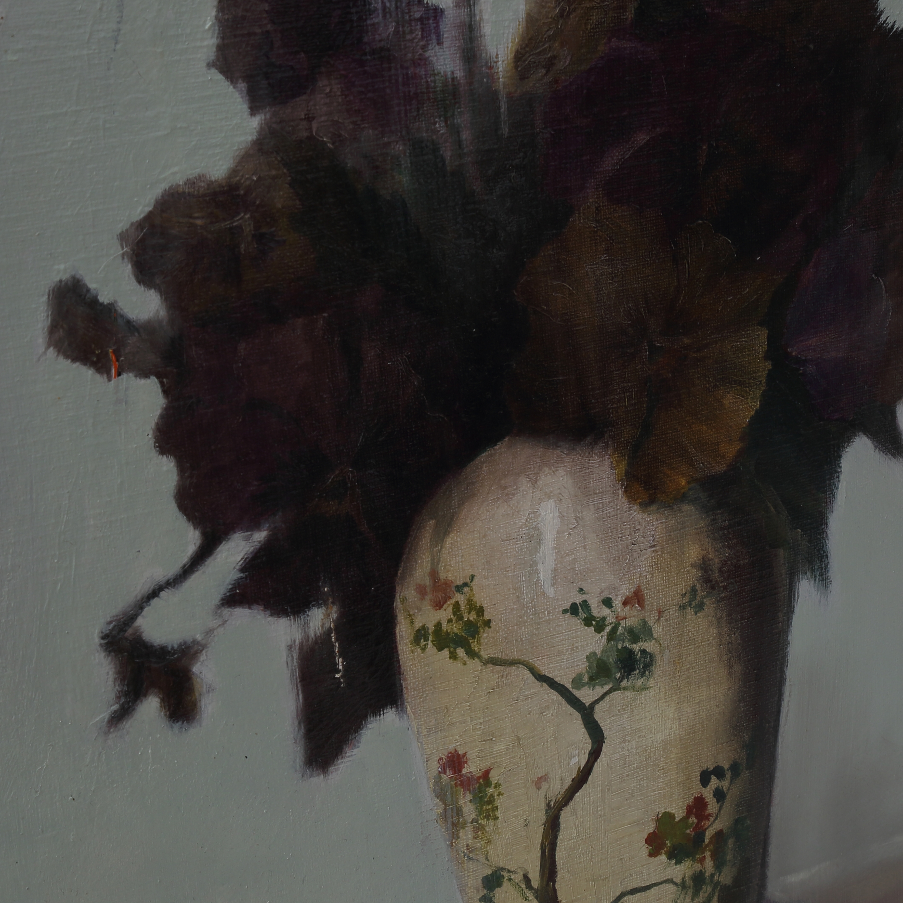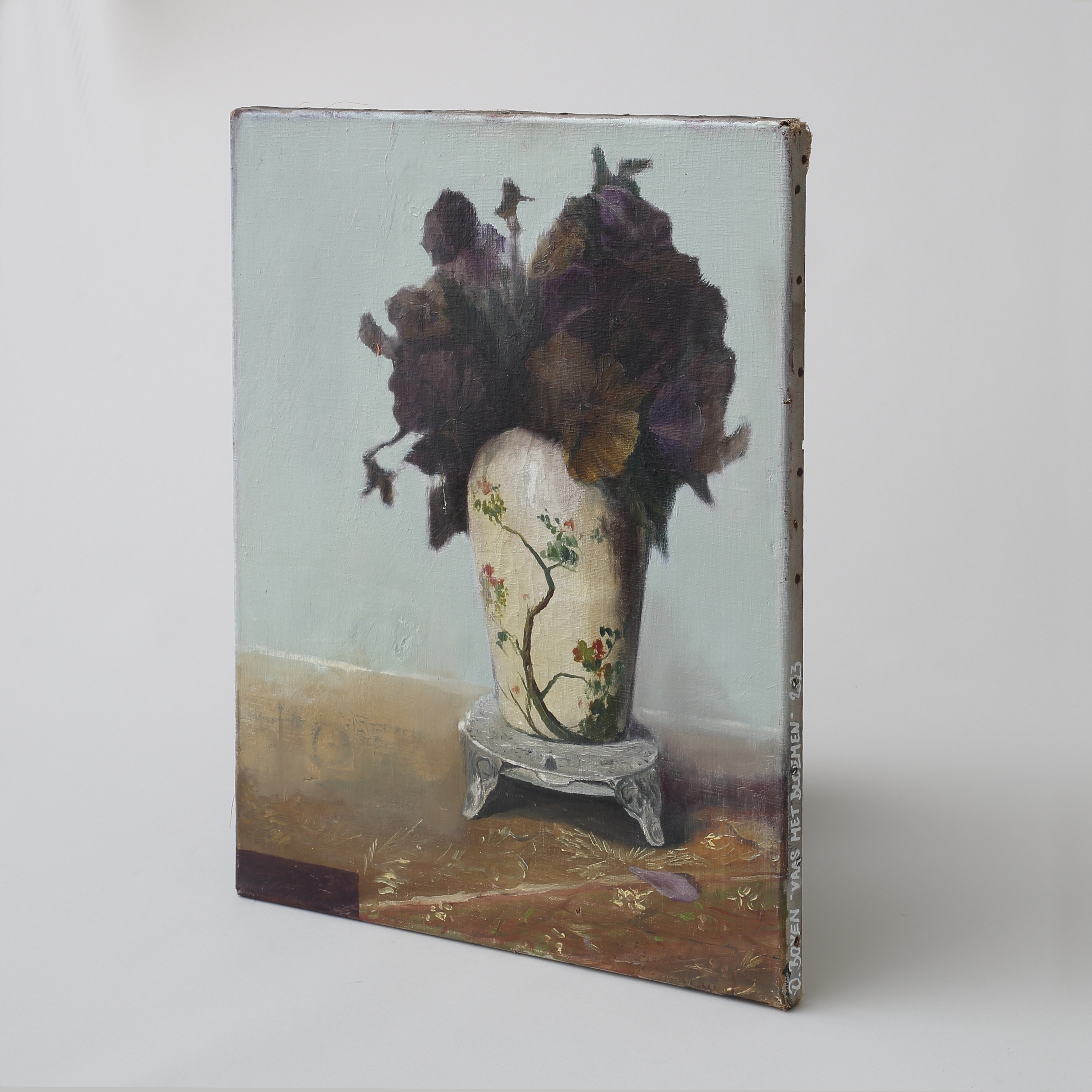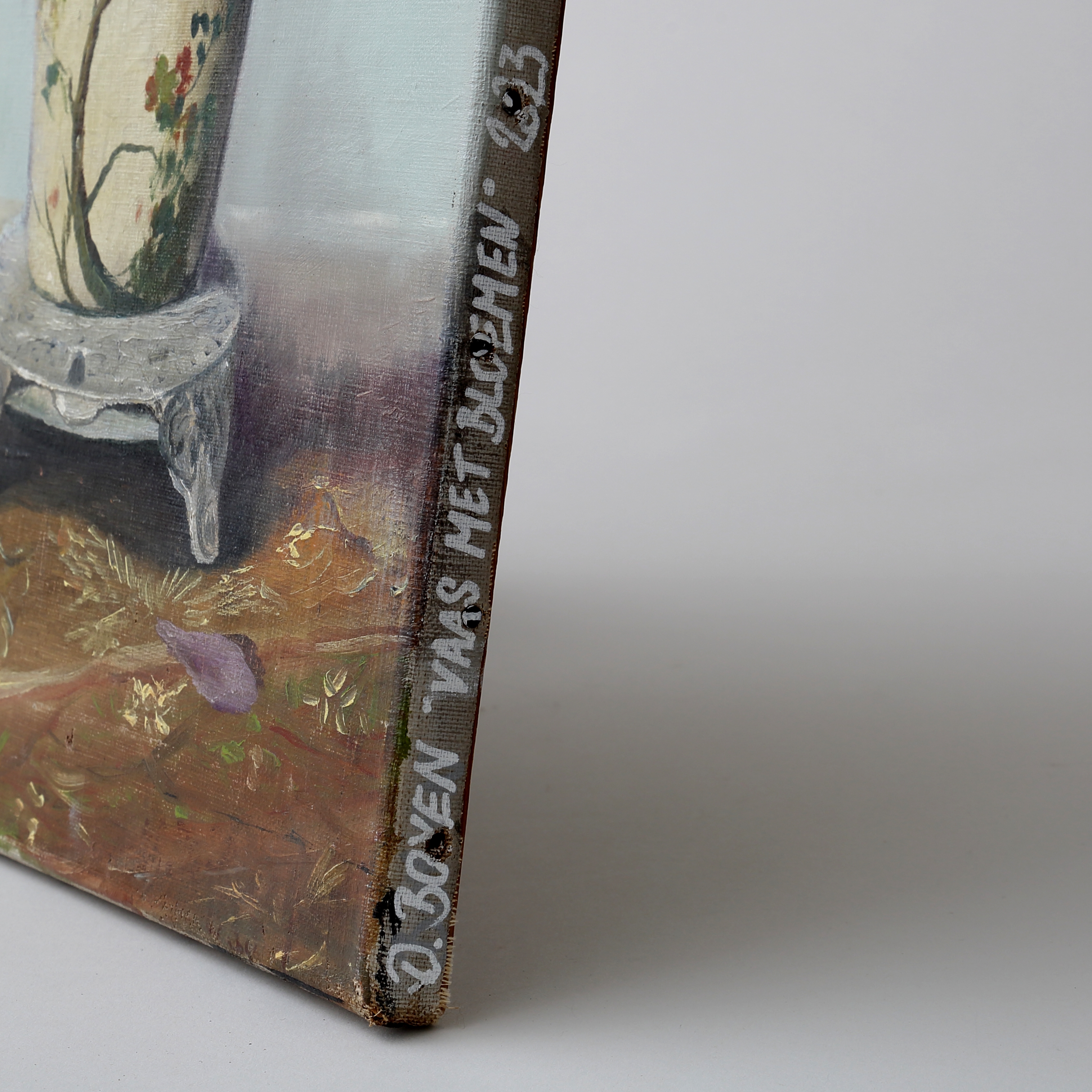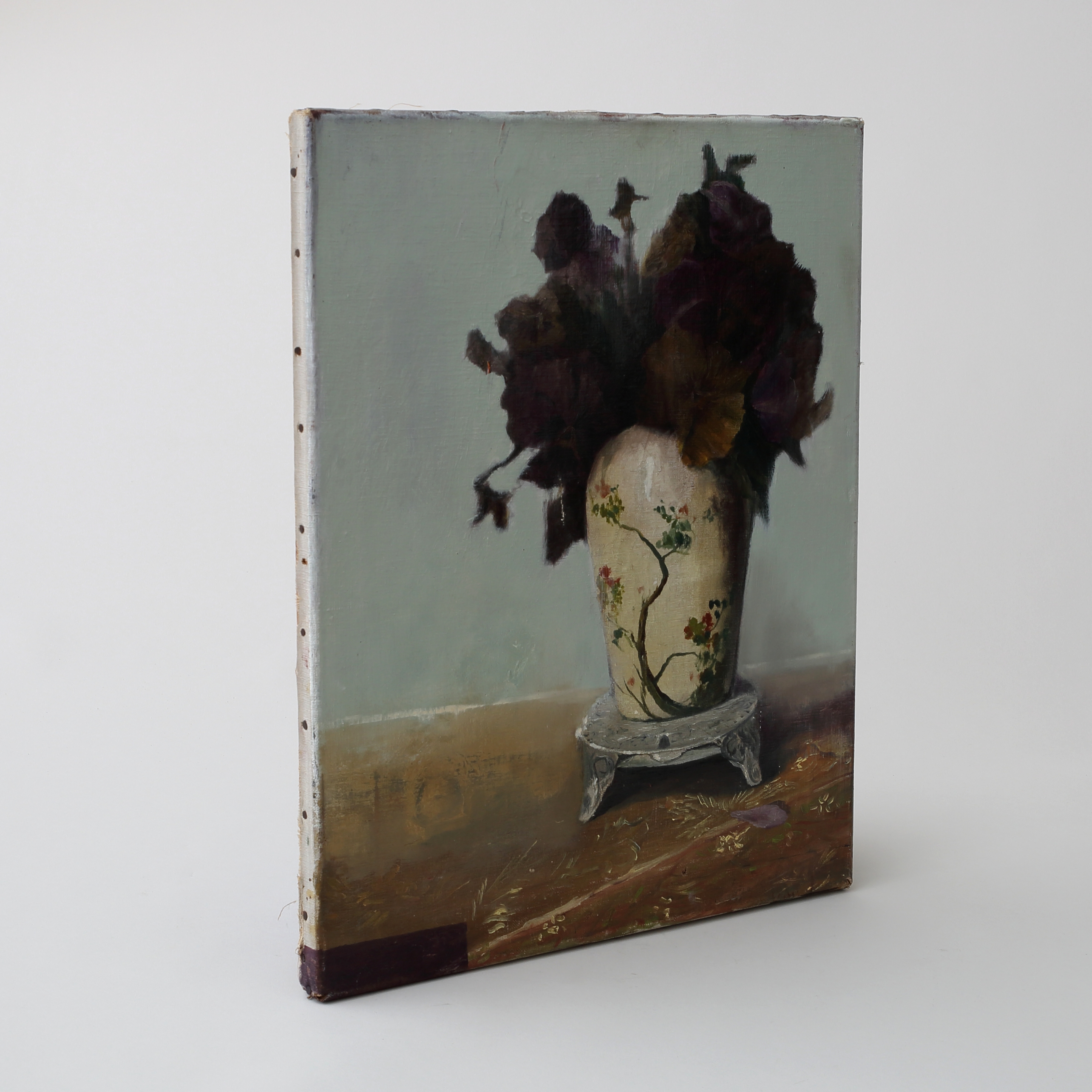 Mixed media, oil on old canvas painting