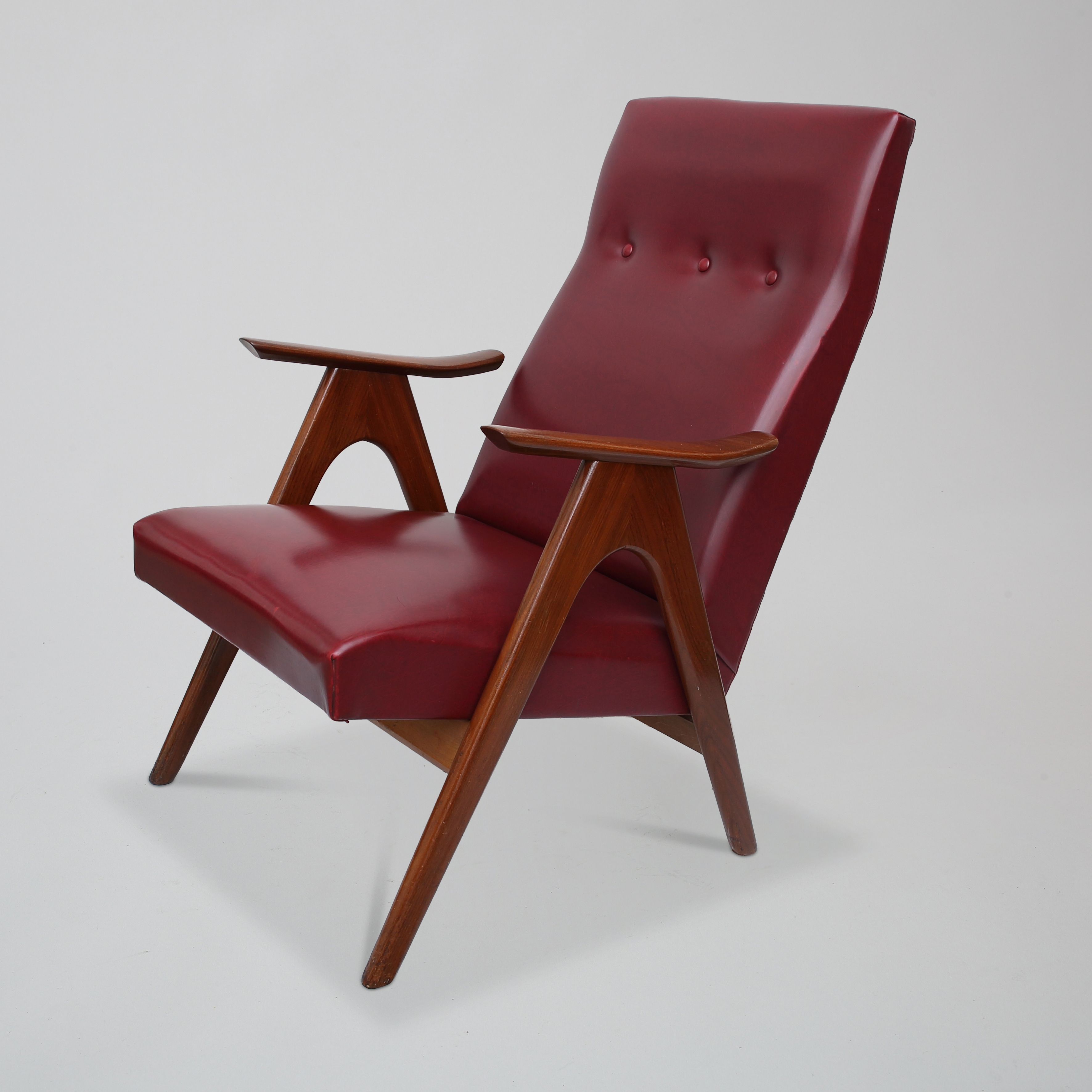 Vintage 1960s armchair in skai and teak wood